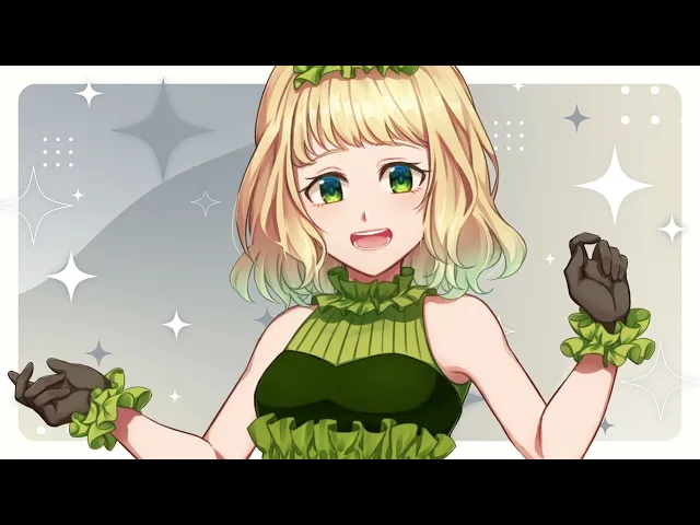アボカドの切った断面のイメージしたスカートにお花を飾りました。緑のフリルをたくさん飾って、アボカドのイメージと森の雰囲気をつくりました。